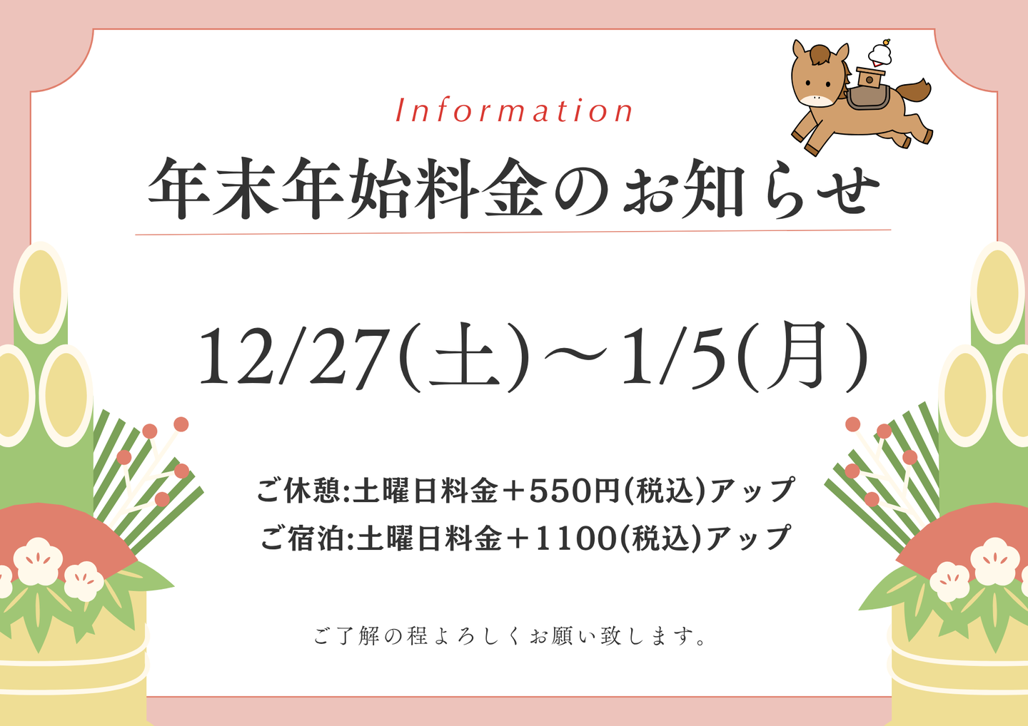 年末年始の料金について